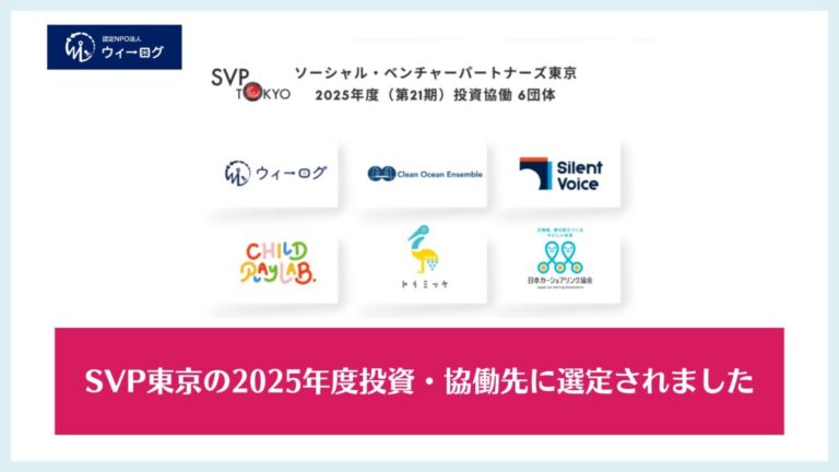 このたび、ウィーログはソーシャル・ベンチャー・パートナーズ東京(SVP東京)の2025年度(第21期)投資・協働先に選んでいただきました。 SVP東京様からは、最長2年間、資金支援と伴走支援をいただきながら、団体の核とな … 続きを読む 【ご報告】SVP東京の2025年度投資・協働先に選定されました