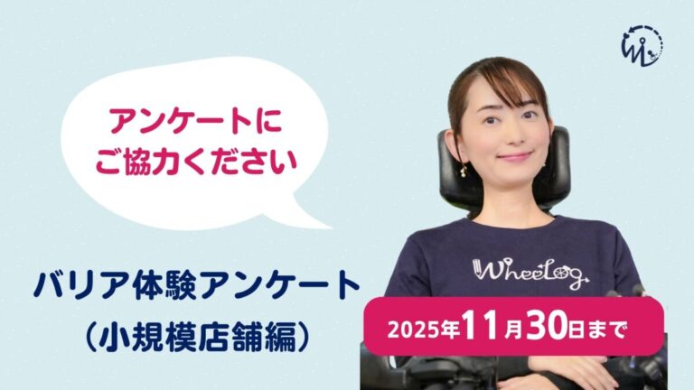 はじめに いつもウィーログの活動にご協力いただき、ありがとうございます。 この度、認定NPO法人ウィーログでは、車いすユーザーの皆さまが小規模店舗を利用する際の現状について調査をするために、「バリア体験アンケート(小規模 … 続きを読む 【ご協力のお願い】バリア体験アンケート(小規模店舗編)