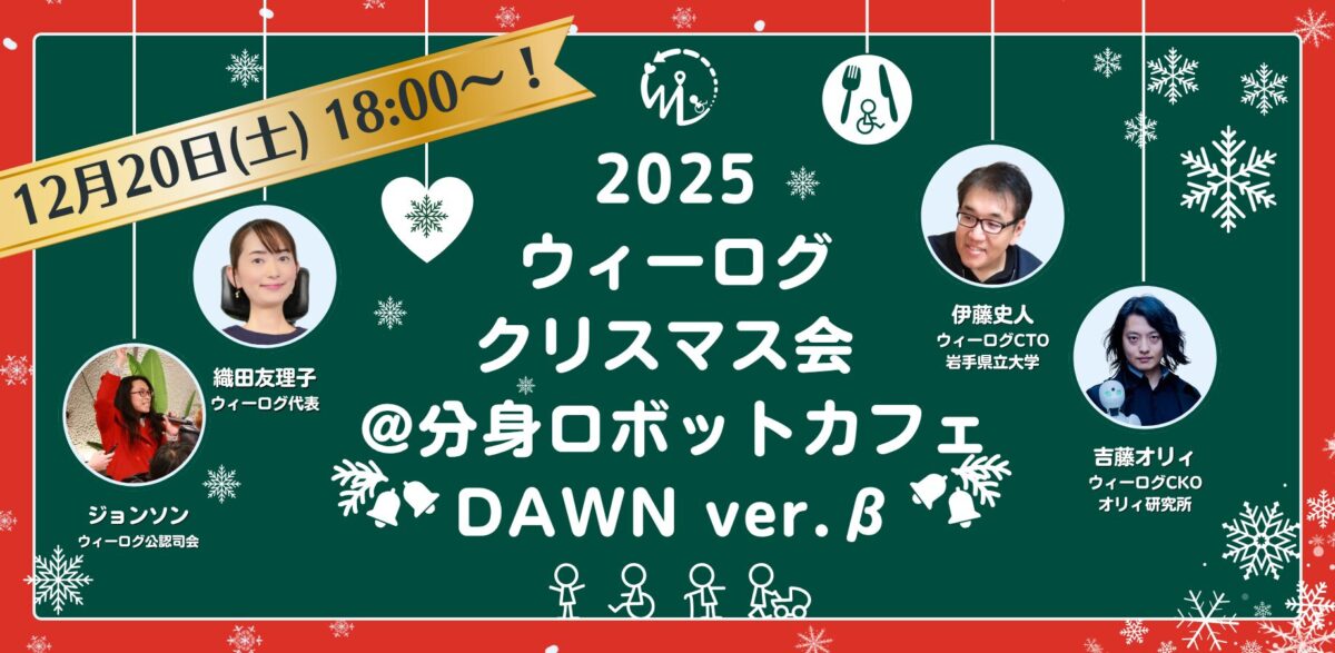 今年も毎年恒例のウィーログクリスマス会を、東京・日本橋の「分身ロボットカフェ DAWN ver.β」で開催します。