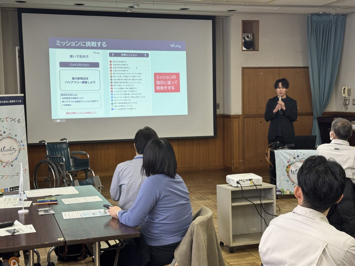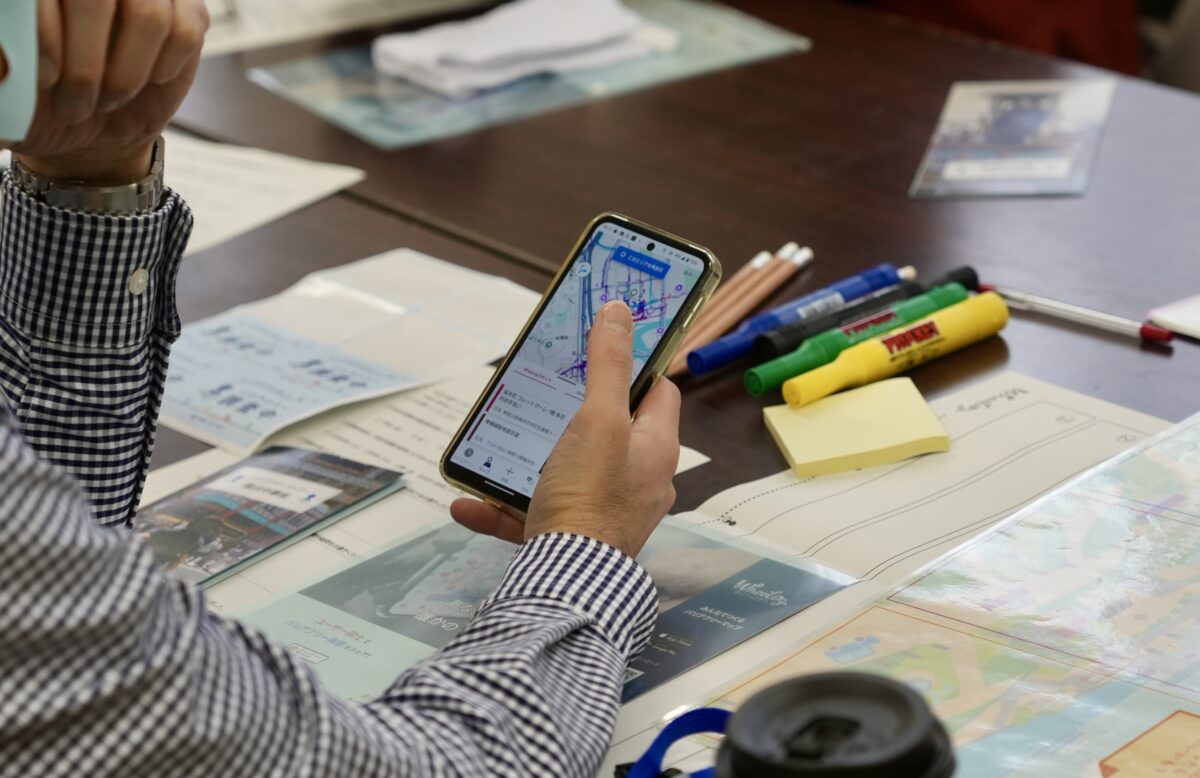 まず初めに、WheeLog!アプリを活用した情報収集の方法を説明しました。単に段差を探すのではなく、「ここなら安心」などのポジティブな情報を発信し、誰かの背中を押す喜びを共有しました。また車いすに初めて乗られる方もいらっしゃったため、車いすの使用方法についても説明しました。