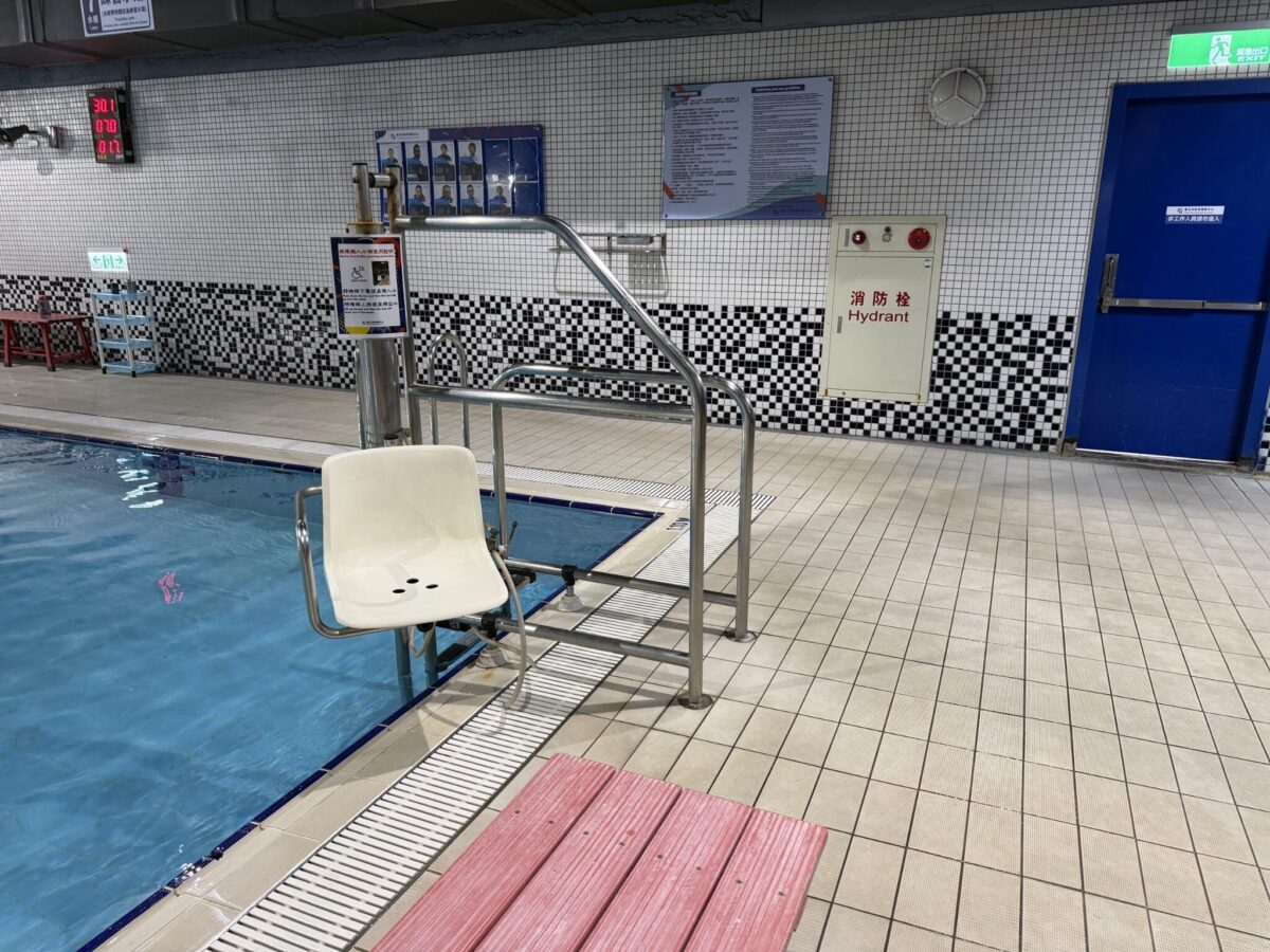 スタッフによれば「毎日のように車いすユーザーの方が泳ぎに来られている」とのこと。設備が単なる「展示」ではなく、日常的にフル活用されている点が印象的でした。