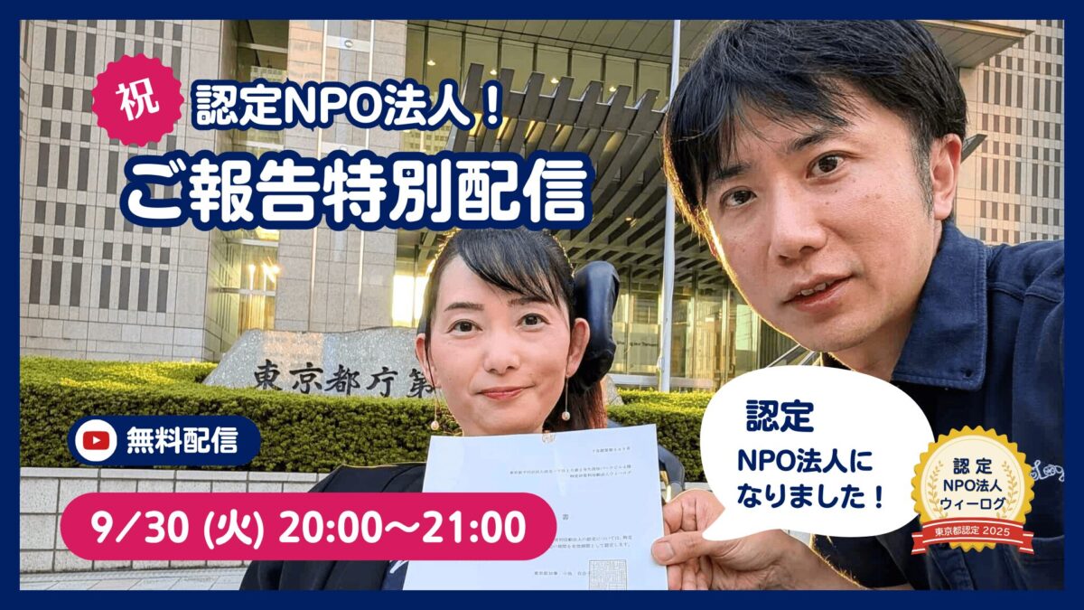 【9/30(火) 20:00】「祝・認定NPO法人!ご報告特別配信」開催のお知らせ 続きを読む »