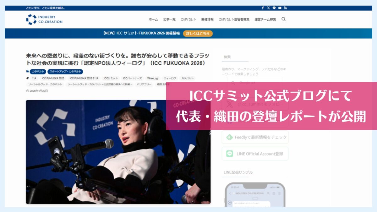 2026年3月に開催された「ICC FUKUOKA 2026」。そのメインプログラムの一つである「ソーシャルグッド・カタパルト」にて、代表の織田友理子が登壇し、準優勝に輝きました。 この度、ICC公式サイトにて当日のプレ […]