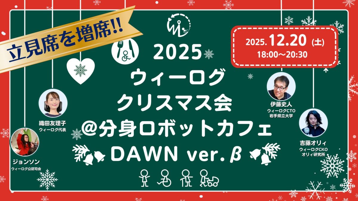 12月20日(土)に東京の日本橋にある「分身ロボットカフェDAWN ver.β」で「ウィーログクリスマス会2025〜語ろう、これからのWheeLog!〜」を開催します。 この度、一般席がまもなく満席となりますので、立見席 […]