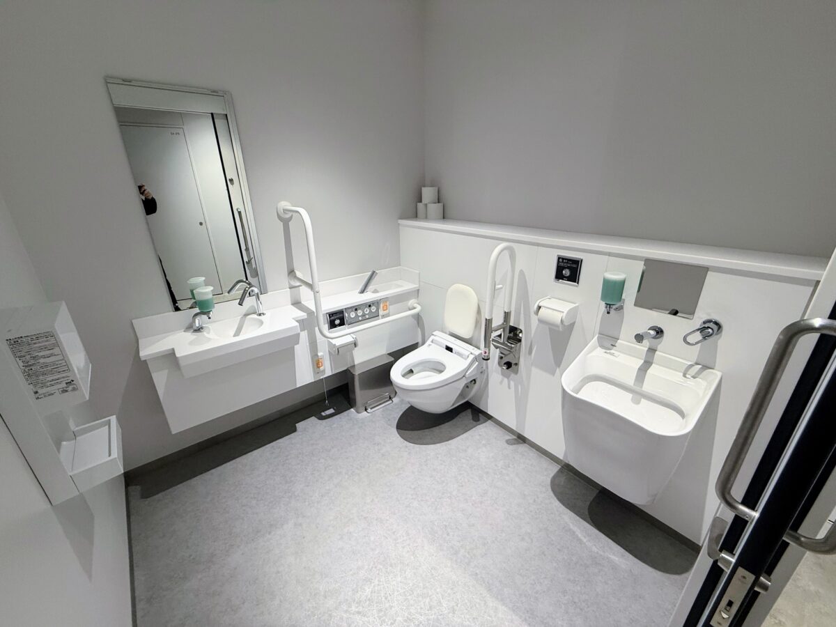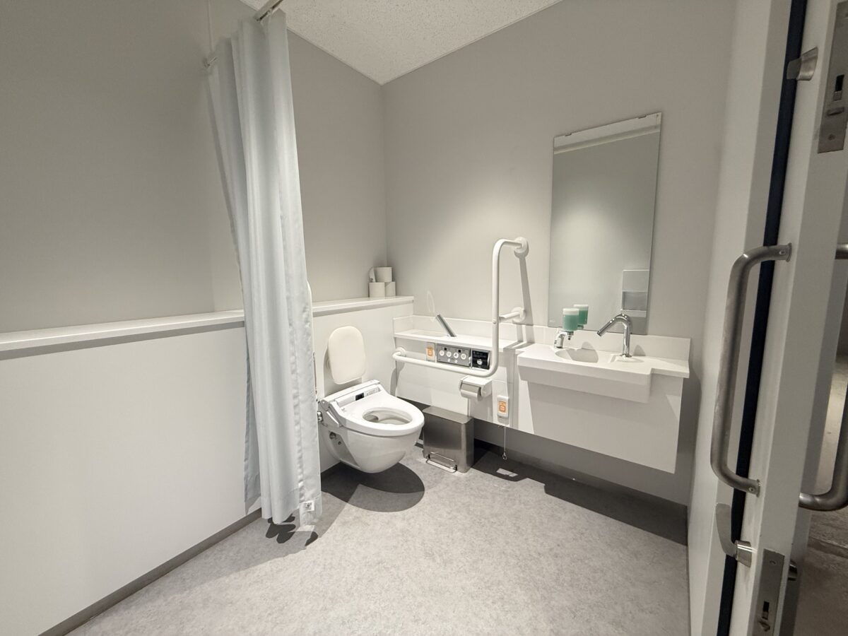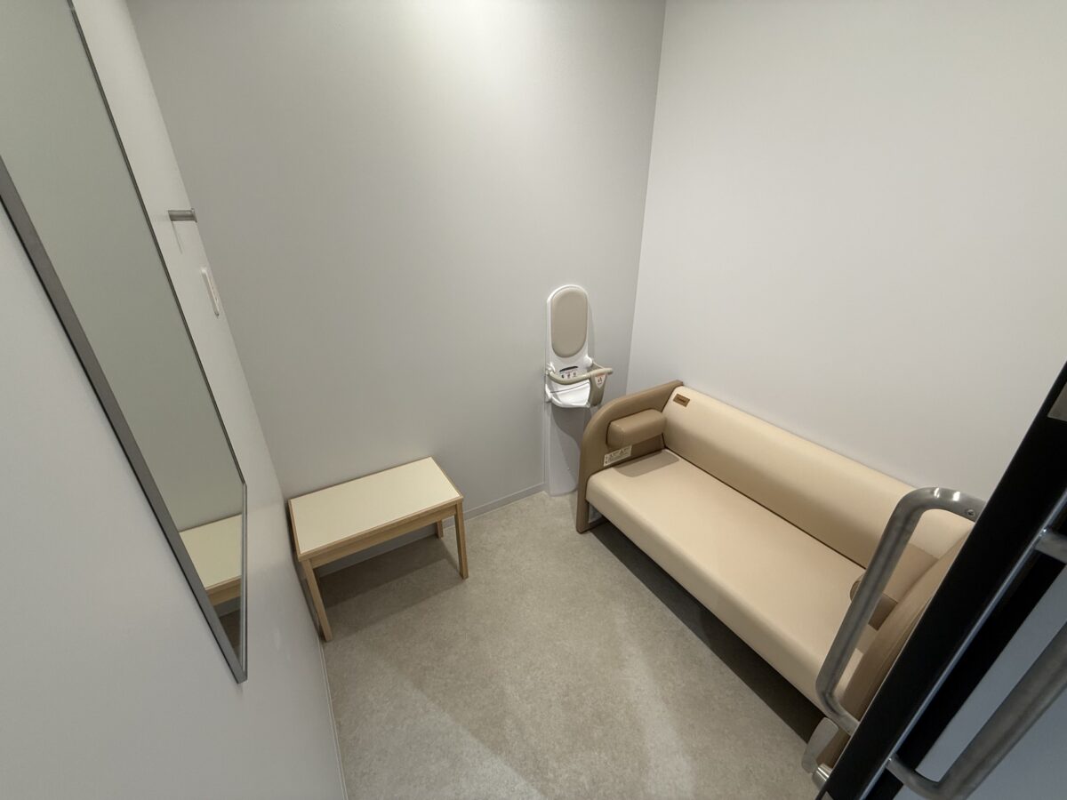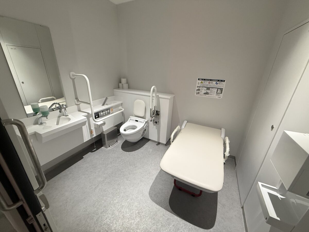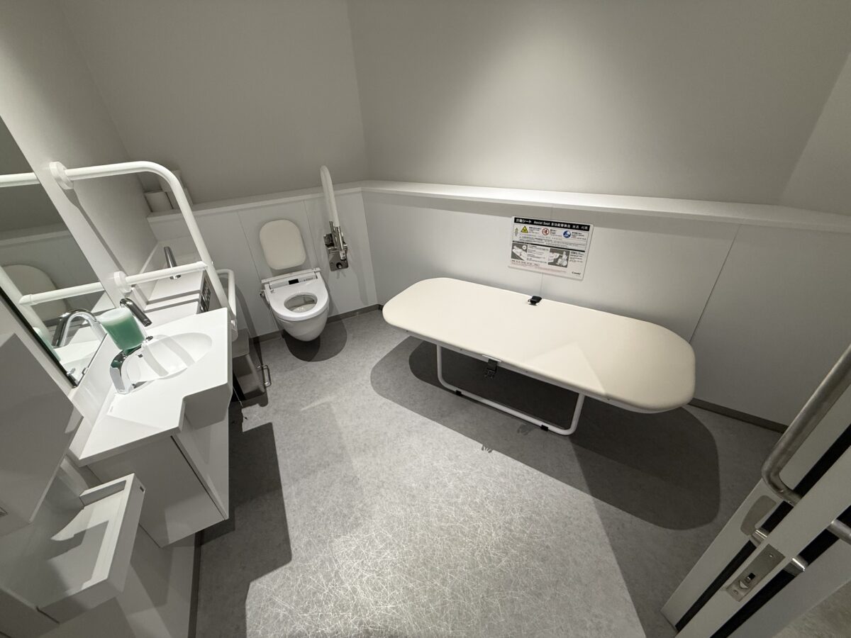大型ベッドは、3階(308-309付近)と4階(406付近)のバリアフリートイレにそれぞれ1台ずつ設置されています。詳しい設置位置は、WheeLog!アプリにてご確認ください。