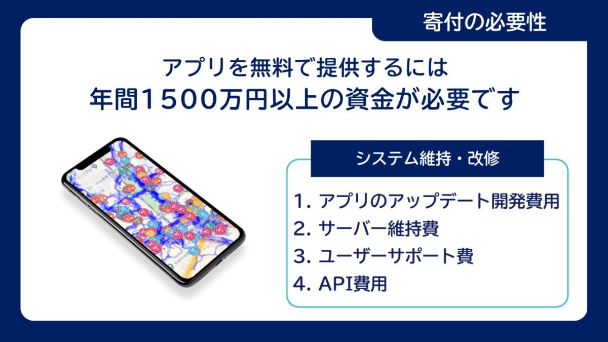 しかし、アプリの提供には大きなコストがかかり、その開発・維持費は現在年間1,500万円以上にのぼります。スマホが進化し、ユーザーが増え続ける限り、このコストはかかり続けます。